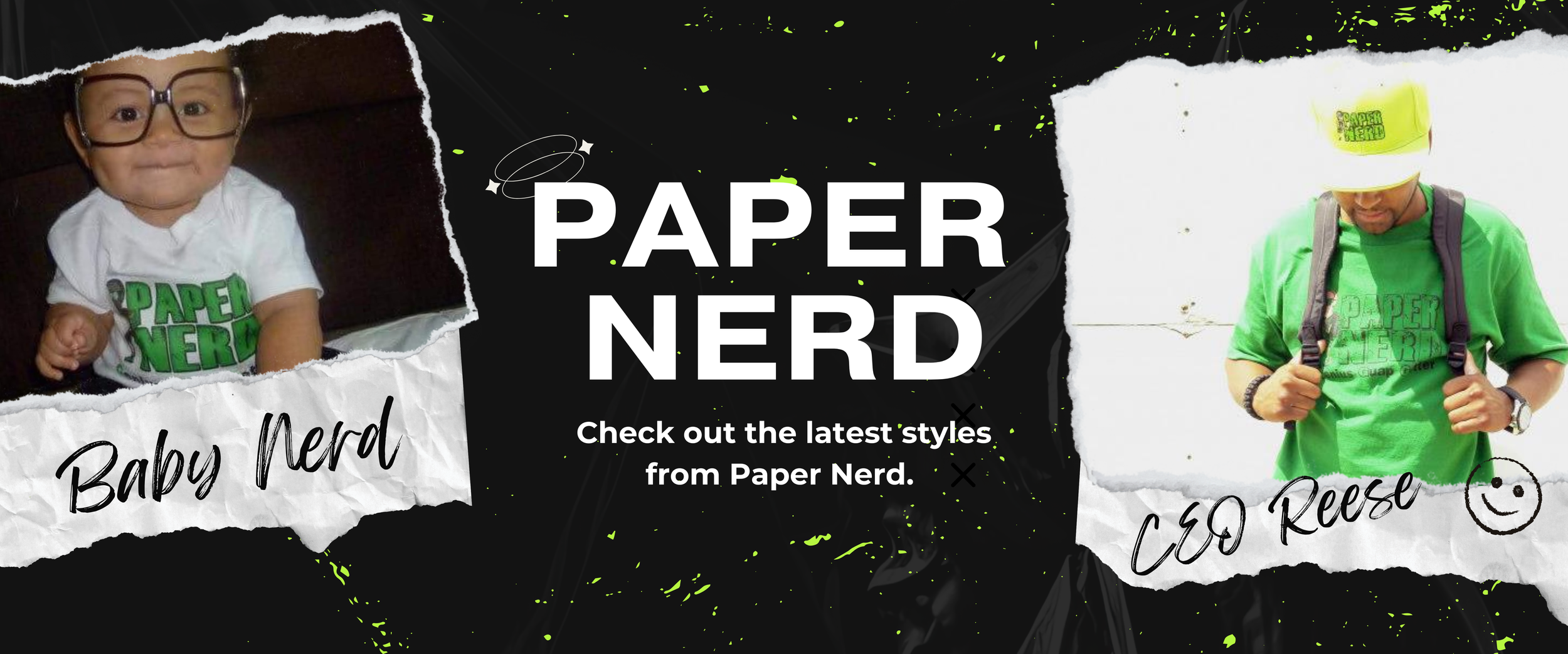 Discover the latest clothing and accessories from Paper Nerd. All products are designed in St. Louis, Missouri by CEO Reese Stewart. Custom designs available by request. Click on the products below to learn more.